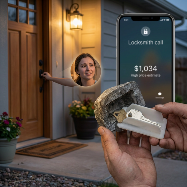 Locked out at the worst time? Don’t waste hours waiting or pay an expensive locksmith bill. StoneShield™ Outdoor Key Hider keeps a spare key safely hidden outside your home, so you can get back inside in seconds when life happens. It’s the simple emergency backup that saves you time, stress, and money.